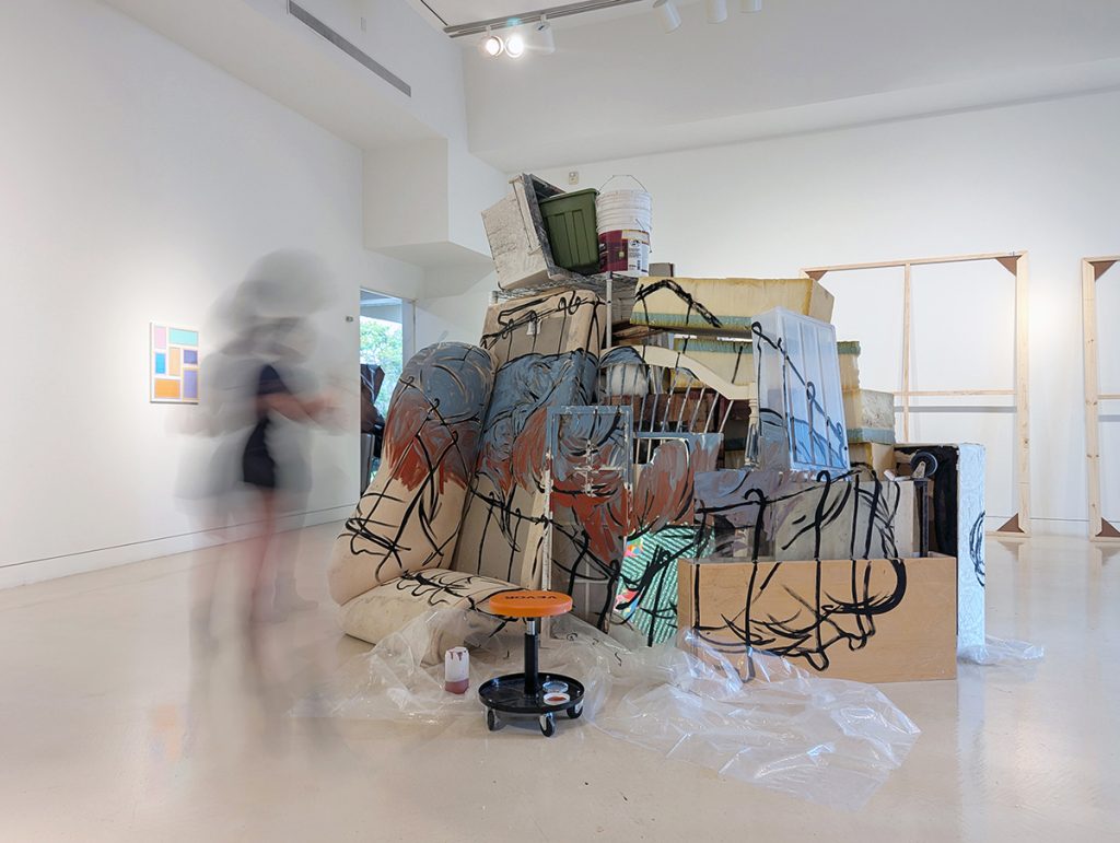 Offload (Torrance Art Museum) CONFINE SERIES Stephanie Sherwood enamel and acrylic on found discarded and leftover materials, dimensions variable, 2025